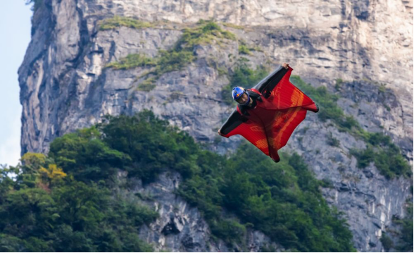 挑战当天,张树鹏乘坐我公司AC311型直升机,升至天门洞后方上空海拔2000米以上的高度,在与天门洞直线距离500米的位置,身着翼装从机舱起跳,以约200公里的时速穿越天门。穿越成功后,张树鹏将继续滑翔飞行经过天门洞广场,以天门山索道为飞行终点线,最后降落在天门山99弯盘山路的设定降落点,整个飞行过程在20秒以内